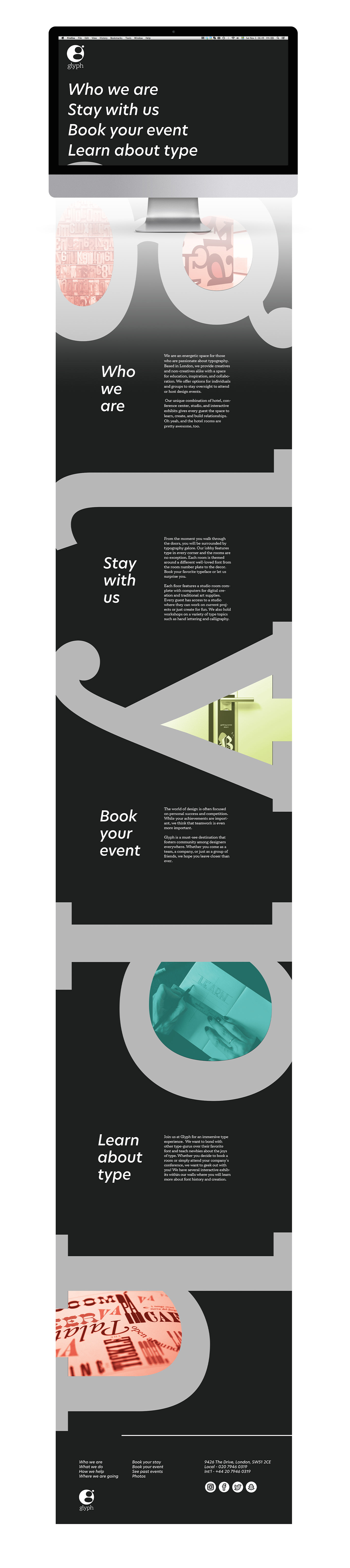 Introducing a hotel that is just your type. This integrated branding campaign showcases Glyph, an energetic space for those who are passionate about typography. As a unique combination of hotel, conference center, studio, and interactive exhibits, this brand uses type for everything. Interlocking letters, sleepy glyphs, and witty copy to entice those looking for a new experience. With out-of-home advertising, social media posts, and a website, Glyph gets your attention and keeps you kerning with endless possibilities.