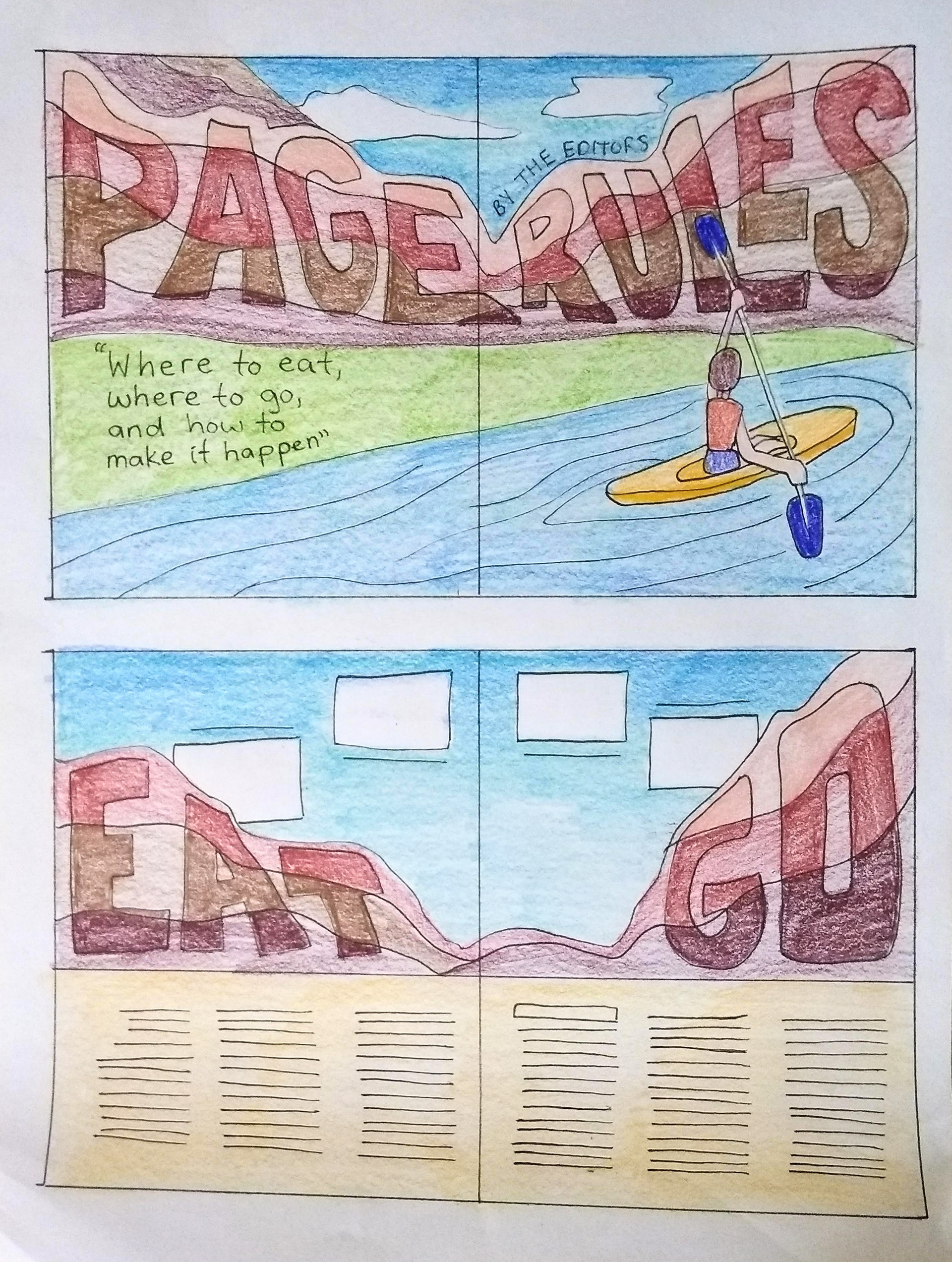 From desktop backgrounds to stock photography, you have probably seen photos of attractions in Page. These magazine spreads are here to show just how much the small town of Page, Arizona has to offer its guests. Vector illustrations and photography highlight the beautiful rock formations in Antelope Canyon while pencil sketches give you tips for your visit.